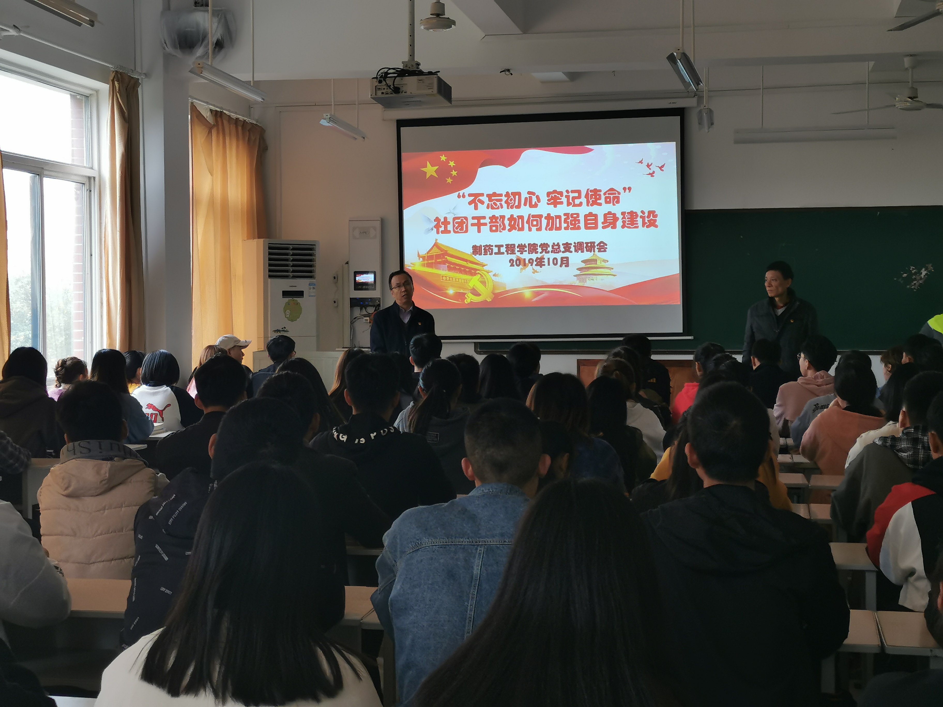 根据“不忘初心、牢记使命”主题教育计划安排,制药工程学院党总支书记韩恩远、副书记张亚东带领我院党总支支委委员对学生社团、班级、宿舍进行走访调研。