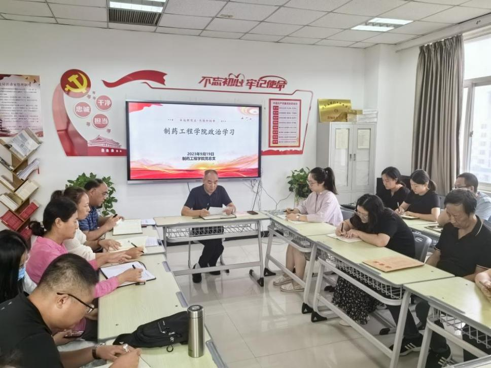 根据学校党委宣传(统战)部安排,制药工程学院党总支于2023年9月19日下午在501党员活动室开展政治理论学习专题会,会议由学院党总支书记窦传斌主持,学院党支部全体教职工参与了学习。