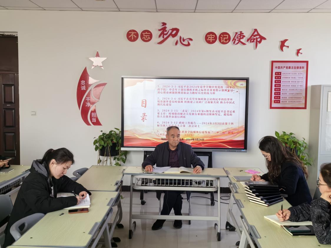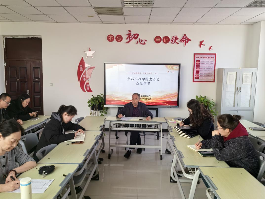 根据学校党委宣传(统战)部安排,制药工程学院党总支于2024年3月26日下午在301党员活动室开展政治理论学习专题会,会议由学院党总支书记窦传斌主持,全体教职工参加学习。