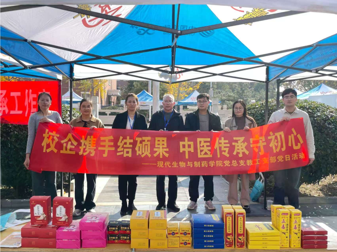 11月5日下午,yl88858永利中国党总支教工党支部以“校企携手结硕果,中医传承守初心”为主题,联合河南金古圣方生物科技开发有限公司,在河南省中医药市集开展党日实践活动,教工党支部全体党员与学生志愿者共同参与。