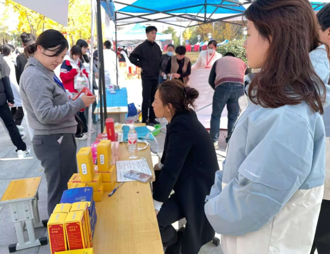 活动现场,党员分组为群众讲解产品研发理念、功效与技术优势,同步与企业研讨中医药研发与职业教育融合路径;同时,学生志愿者承担人流疏导、资料发放、反馈收集工作,在实践中锤炼了能力。