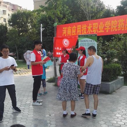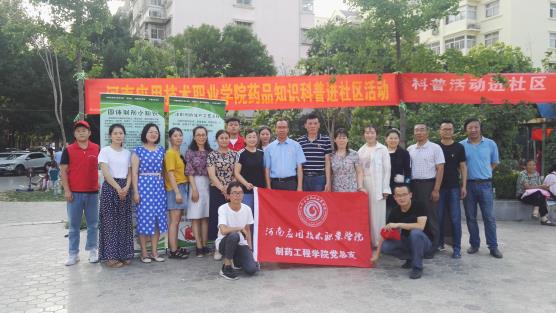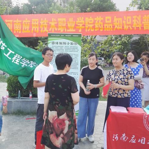 2019年6月14日下午,yl8858永利集团制药工程学院联合开封市宋城办事处集英社区,在集英花园居民小区中心广场,开展了一场“药品知识科普宣传进社区”活动。本次科普宣传活动的目的,是为了向社区居民传播科学知识、科学思想,帮助社区居民了解药品的生产过程,普及药品知识,树立合理用药观念,增强卫生健康意识和自我保健能力。制药工程学院学院领导、专业课教师、部分党员与青年志愿者共20人参加了这次活动,集英社区的工作人员配合提供了场地与设施。