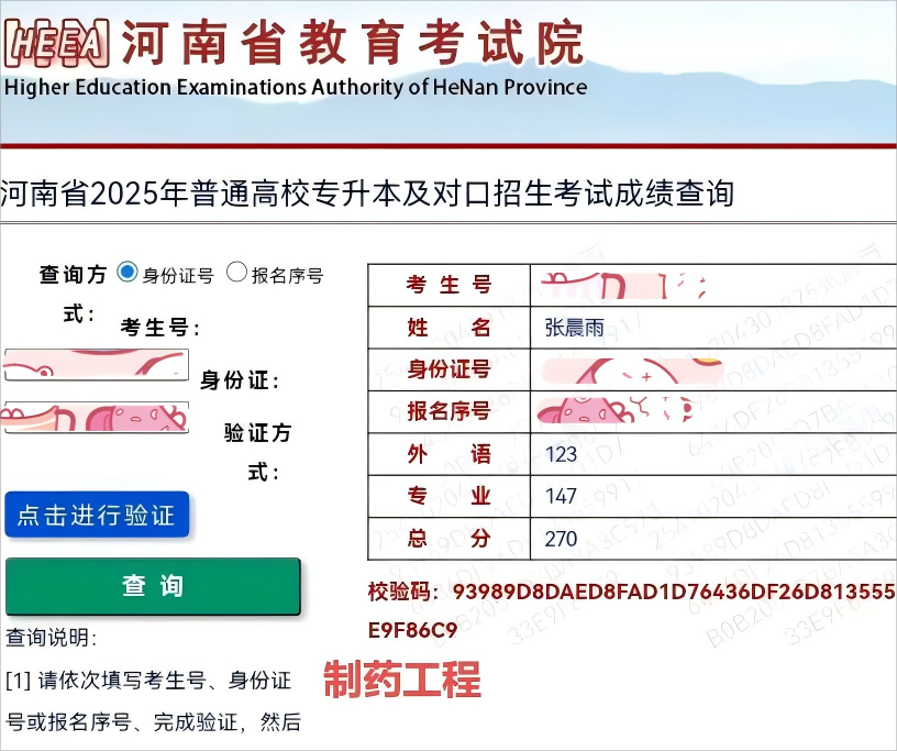 近日,河南省2025年“专升本”文化考试成绩公布,制药工程学院中药制药2203班的张晨雨同学以270分的总成绩荣获制药工程专业河南省状元,彰显了学院人才培养的卓越成效!