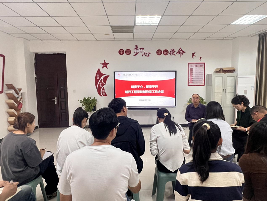 为进一步加强我院辅导员队伍专业化职业化建设,着力提升年轻辅导员的职业素养和岗位适应力,10月11日下午制药工程学院在办公楼301会议室召开辅导员工作会议,学院全体专兼职辅导员参加会议,会议由制药工程学院党总支副书记白小茗主持。