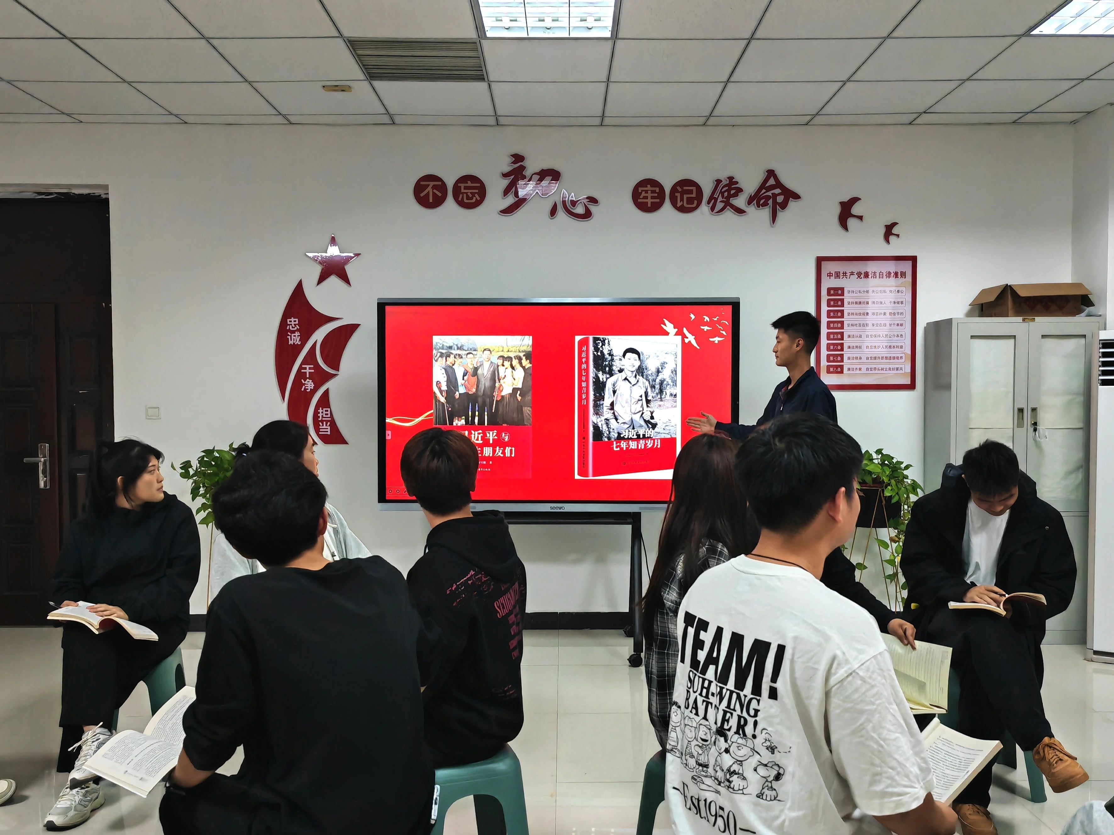 学生干部闫文昊向大家分享了《习近平与大学生朋友们》和《习近平的七年知青岁月》两本大学生青年读物,并分享了自己的读书感受。他表示,这两本读物由四个关键词“真诚、坚定、吃苦、勤学”引出习主席与大学生之间的点点滴滴,全景展现了习近平同志在从政不同时期与青年大学生交流交心交友的故事,使同学们能够跨越时空感受到从而更加全面地理解“两个确立”的决定性意义。