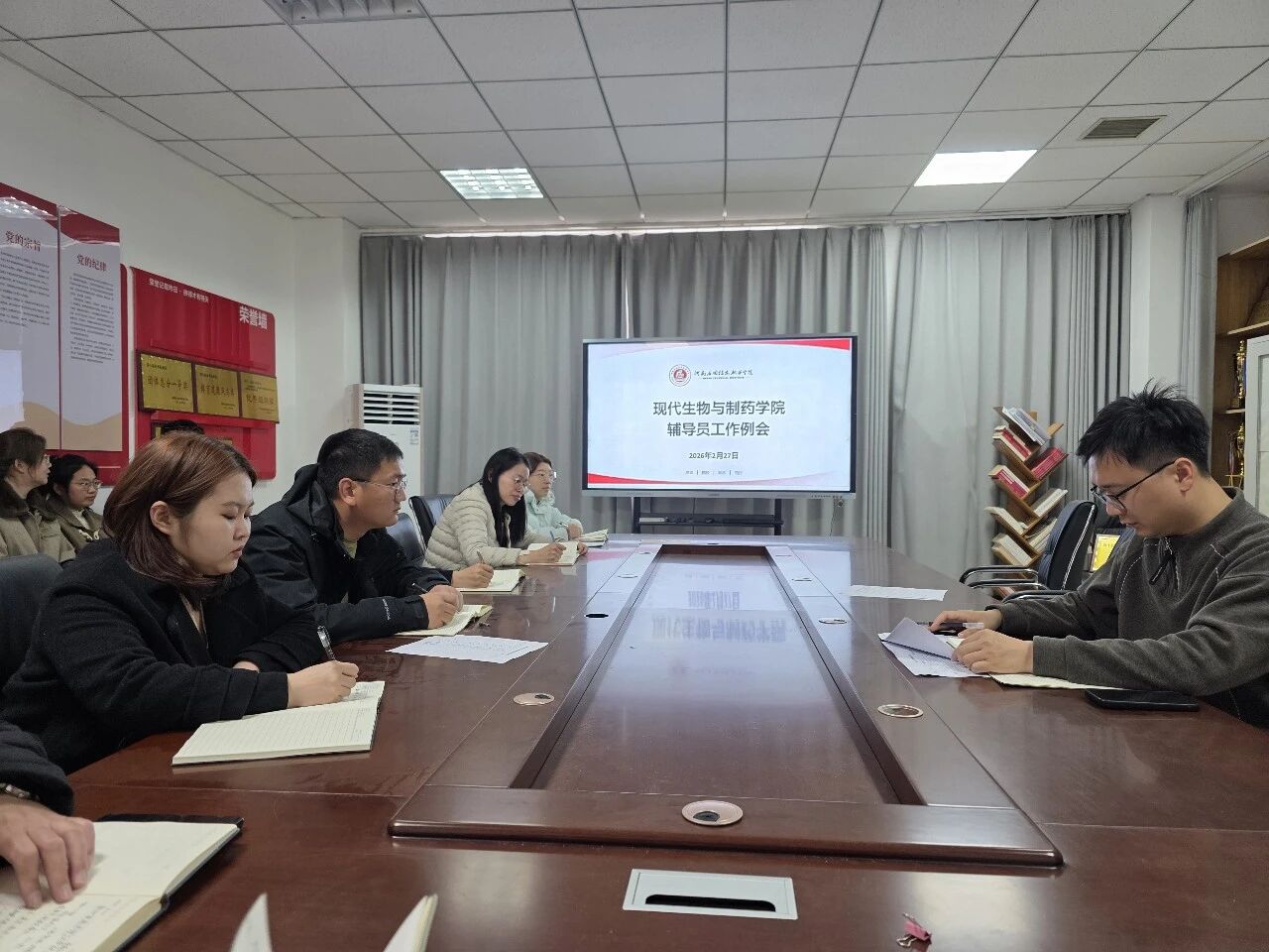 为扎实做好学生管理工作,明确工作方向,压实育人责任,2月27日,yl88858永利中国在办公楼301活动室召开2026年春季学期第一次辅导员工作例会。党总支副书记王俊永主持会议,全体专兼职辅导员参加。