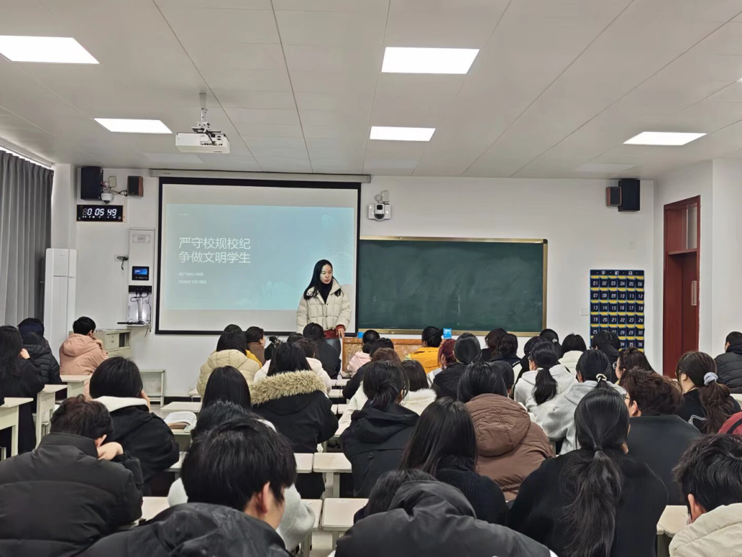 各班辅导员结合近年校园典型违纪案例,以案释法、以例明纪,重点强调了考试纪律、宿舍安全、请假销假、实习实训等管理事项,详细讲解违纪行为对应的处分流程与不良影响,提醒学生自觉抵制违规行为,珍惜在校学习生活时光。